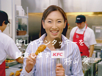 引退して初めての仕事が、KFCのテストキッチンに行ってパリパリ旨みチキンを食べる、という内容で、3月以降、かなり大量に放映されてる。