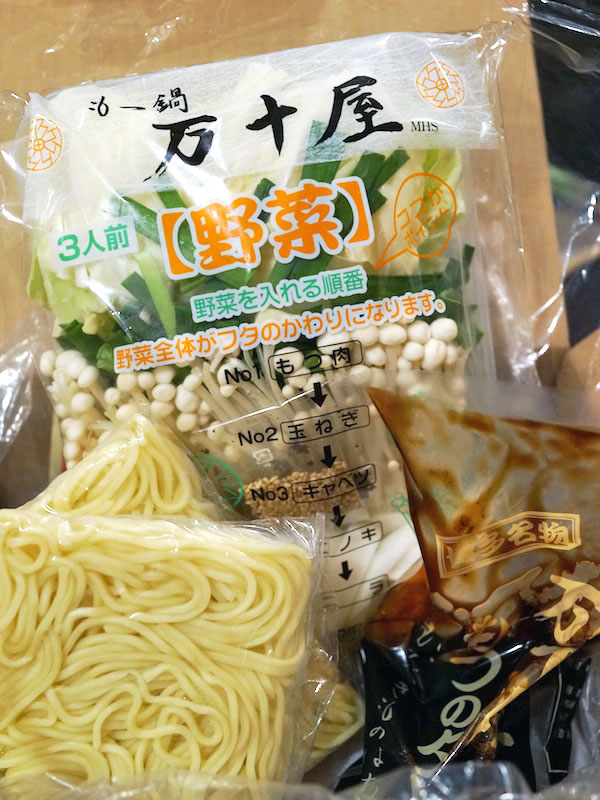おいしいモツ鍋があるんですよ…、と知り合いが送ってくれた「万十屋」という福岡市にあるお店のモノで、モツやタレの他にもキャベツに玉ねぎ、ニラが入って他には何もいらない便利なありがたさ。