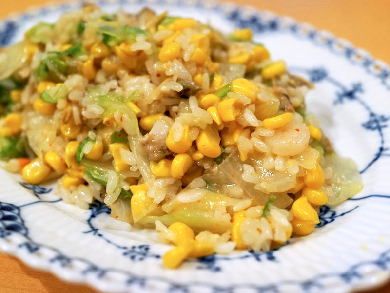 タレがかかった野菜炒めの部分がピリッとおいしくて、それをご飯にのっけて昼のお腹を満たす。試行錯誤はまだ続く?