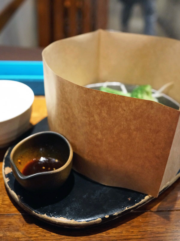 その鉄板をくるんと囲む薄紙と、これがココの開店当初からのスタイルで、開店当初からずっと守っているのはおそらくこれくらい。商品は試行錯誤でずいぶん変わっている感じ。