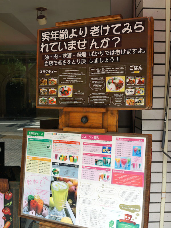 新宿御苑の近くにあって、目立たぬお店。けれど入り口の横に看板が置かれててそこに「実年齢より老けてみられていませんか?」と、かなり強烈なメッセージ。
