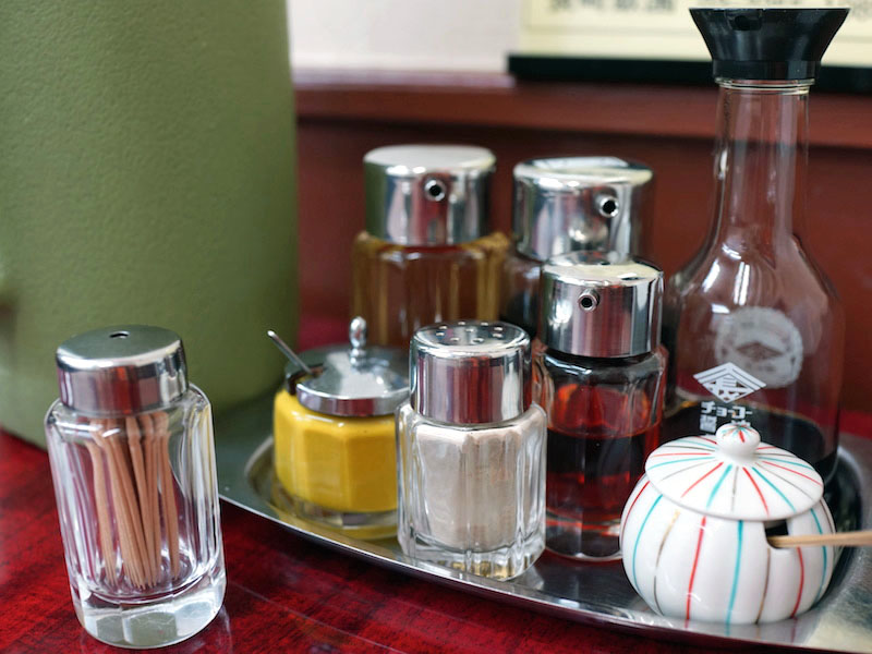 どれも頭がピカピカキレイに磨かれていて、しかもそれの受け皿までもがキラキラピカピカ。ソースや醤油を持ち上げても、シミのひとつもついてない。