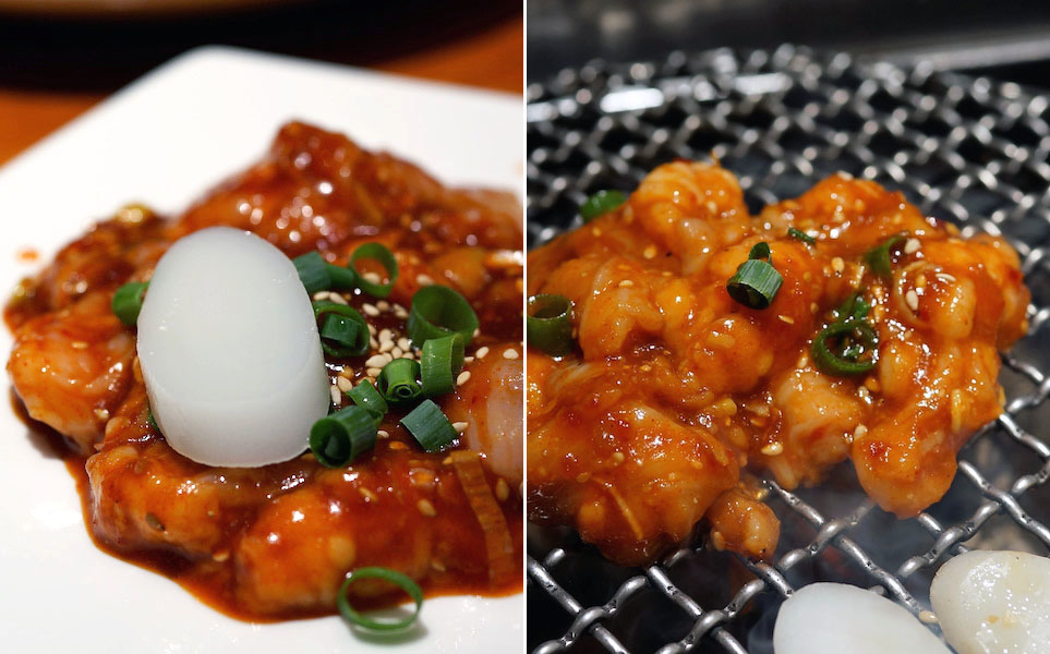 子持ち昆布に牛肉の串。馴染みになるのがたのしい店でございます。