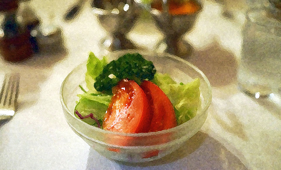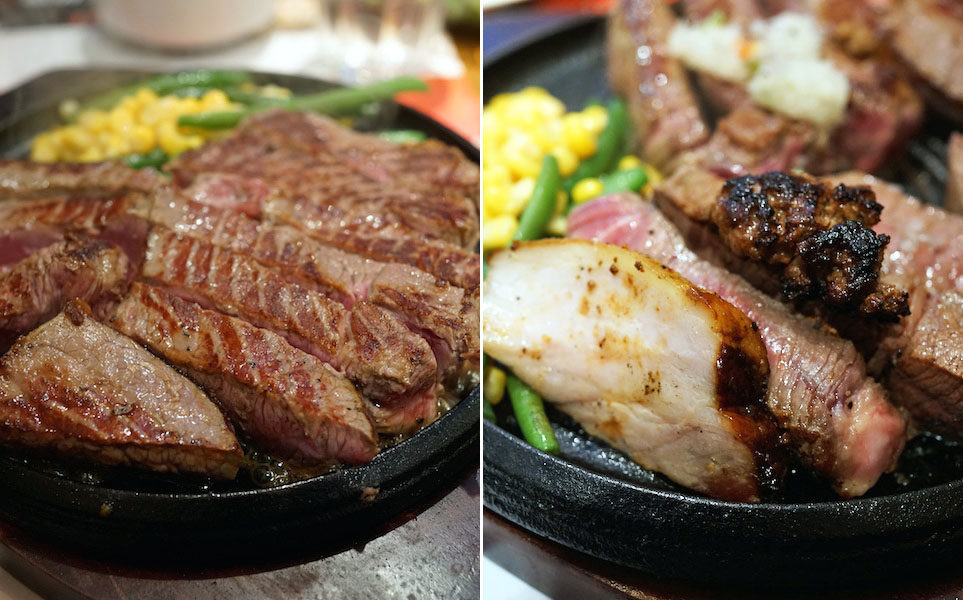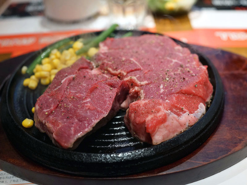 今日はリブロースを1キロとヒレを1キロ食べ比べ。クリスピーなサラダもおいしく、食後のコーヒー、シャーベットまで息をつかせぬ1時間。