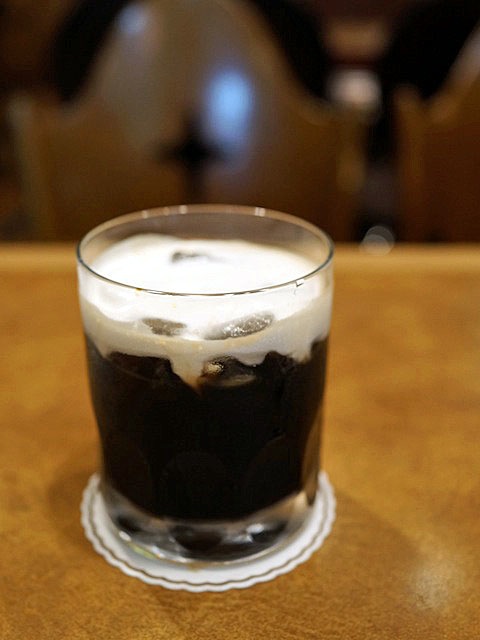 ここのアイスコーヒーは砂糖でちょっと甘めの仕上がり。大きな氷をゴロンと入れて、シャキッと冷やす。