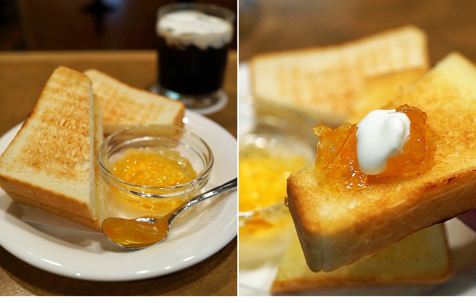 そこにタップリ、マーマレード…、これがスキッと苦くて酸っぱい。