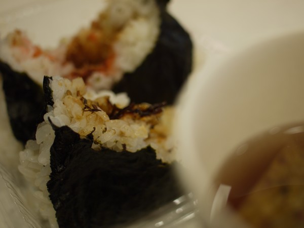 むすびたてのをパックに入れて、たった3分ほど歩く間に海苔がしっとりしてしまう。