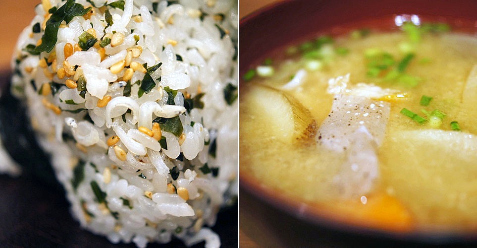 玄米ご飯と違ってムッチリ、口の中での散らかり具合は弱いけれど、具材がパラリと散らかって食感軽快…、大きく食べると2口半ほどの程よい大きさもまたいい感じ。