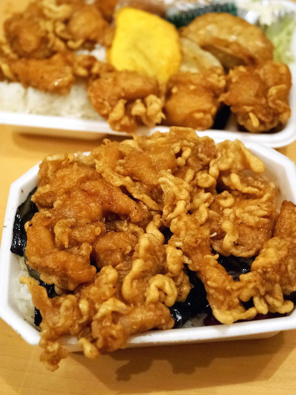 それというのもココの名物は鶏の唐揚げ。それがドッサリ、ご飯の上を覆い尽くしてはみ出す見事。