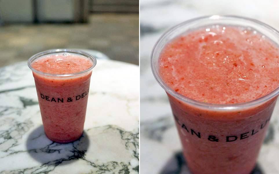 何を飲みましょ…、とカフェのメニューをみると、フレッシュストロベリーのジュースがあるっていうのでそれ。