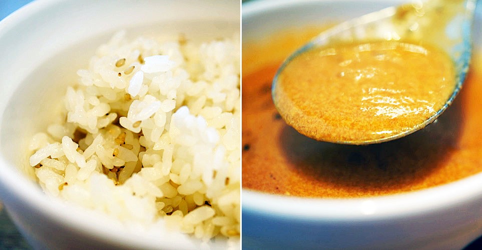 ゴマをパラッとふりかけた、ほのかな塩味おいしいご飯と一緒に口に運ぶと、ご飯にビスクの味がうつってリゾットみたいな味わいになる…、あぁ、贅沢だってニコリとなった。