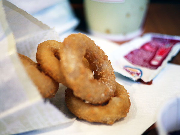 今日のオニオンリングスはなぜだかどれも小さめで一個丸ごと口に自然に収まっていく。