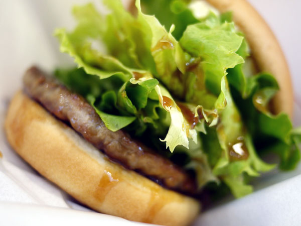 バッサリ、ハンバーガーからはみ出てしげる、パテより存在感のあるレタスの葉っぱ。