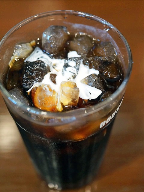 それから四角く小さい、まるでタブレットガムのような形の氷がタップリはいってやってくるから…、それがサラサラ、グラスに触れて耳にも涼しくアイスコーヒー自体も容赦なく冷える。