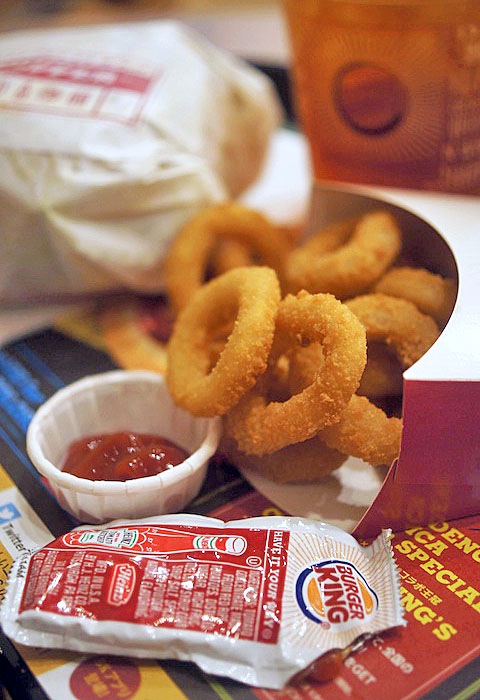 セットでフレンチフライかあるいはオニオンリングが選べるようになっていて、絶対ここではオニオンリング。
