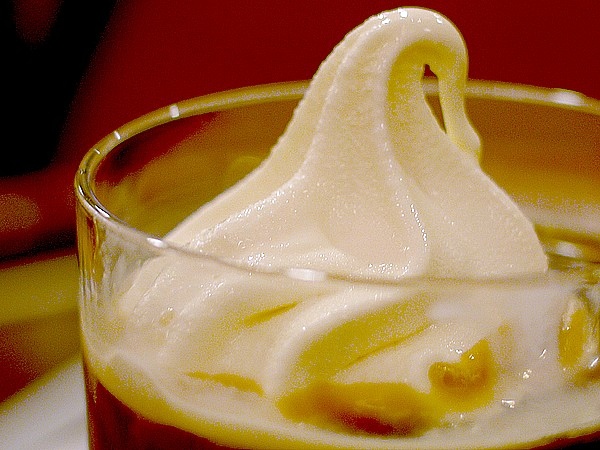 冷たいコーヒーと触れたところがシャリシャリ、まるでシャーベットのようになるのがおいしい。