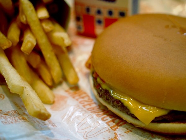 たまにいけるとうきうきしながらチーズバーガーを食べていました。
