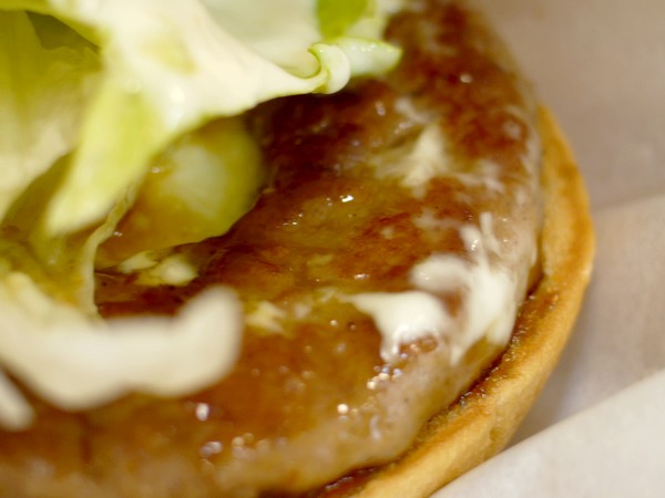 すると、なるほど…、バンズの上には穴あきパテがのっかっている。