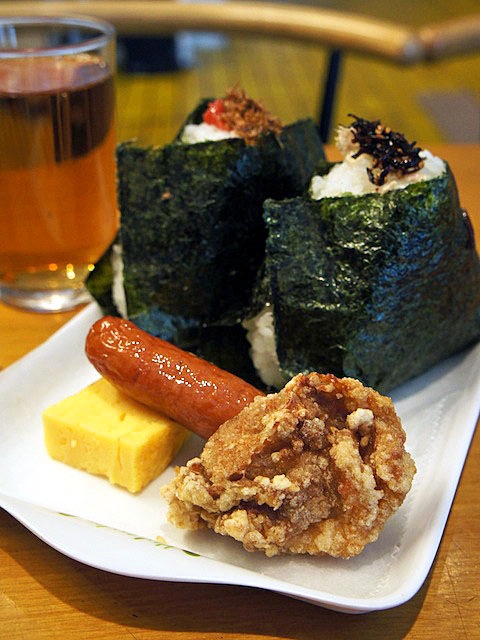 おばちゃんたちがニコニコ働いているところを見ながら食べるおむすび。