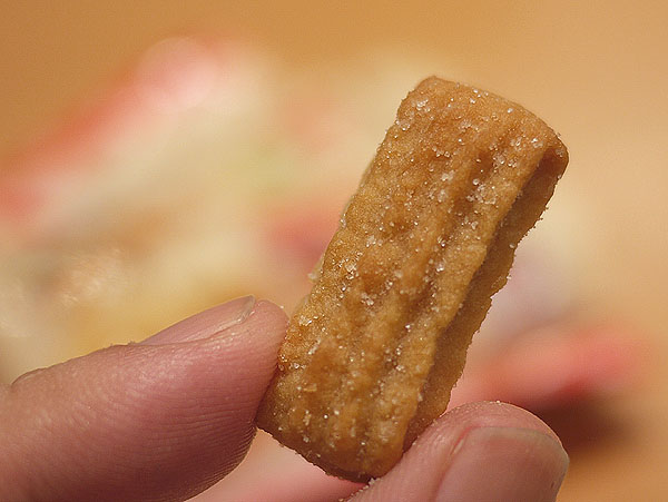 縦の凸凹、グラニュー糖がタップリふられて確かに短いチュロスの形。