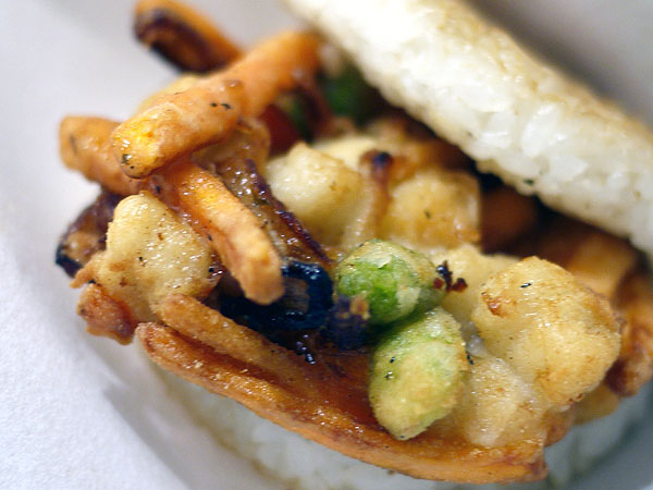 本当は、オリジナルのつくねライスバーガーをも一度食べてみたくはあるけど、まぁ、しょうがない、かき揚げにする。
