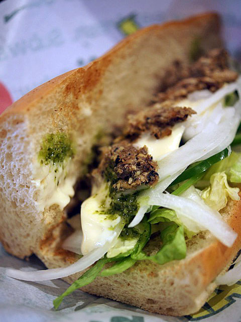 サーディンだけをとりのぞき、バジル風味のベジサンド。