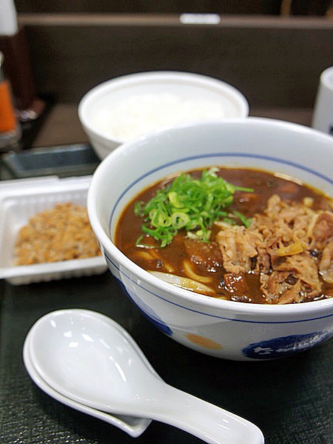 特にカレーうどんのスープ混じりのサラサラカレーとの相性が素晴らしくよく、そう言えば、札幌のスープカレーの定番トッピングにも納豆っていうのがあったようなぁ…、って思ったりする。