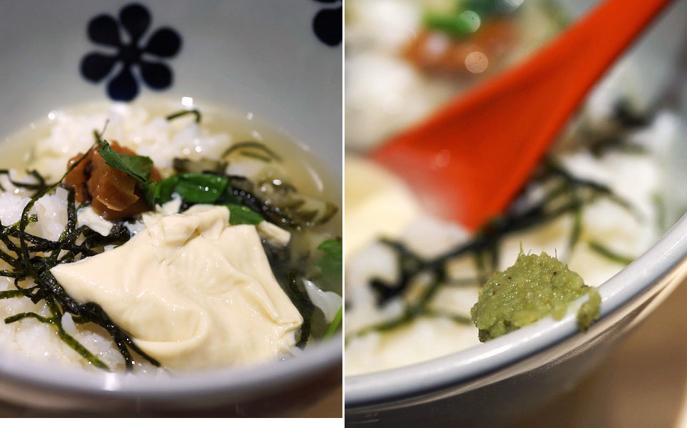 湯葉がネットリ、口の中にやってくるのがいつものお茶漬けと違ったなにやら上等風を演出していて、オモシロイ。