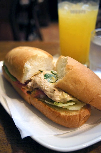 フッカリとしたここ独特のソフトバゲットを使ったサンドイッチの具材が、タイ料理風という新商品。
