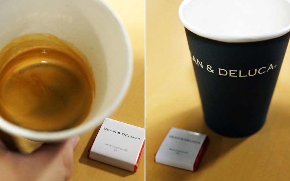 そして移動で東京駅。電車の時間までをディーンアンドデルーカのダブルエスプレッソでのんびりとする。