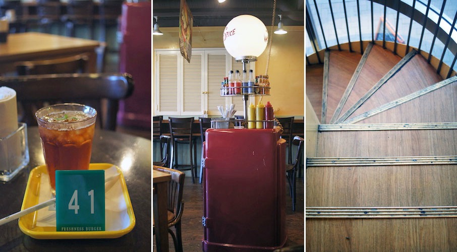 グリドルひとつで商売をする多くのカフェや食堂で、同じグリドルで肉とパンケーキを一緒に焼くのは不可能だから、それでハンバーガーはお昼から。