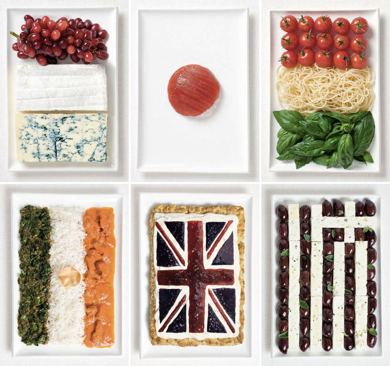 国旗って、既に完成された、美しいデザインだと常々思っておりましたが、それをさらに食材で表現するなんて!しかも思わずニヤリ、としたくなるチョイス。