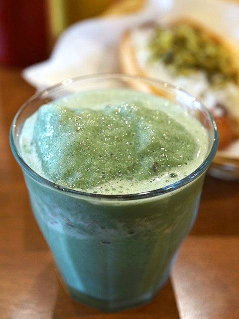 スピルリナっていう栄養的にバランス取れた「藻」を使って作ったスムージー。