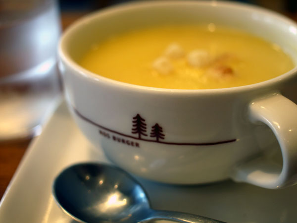 コーンスープを入れているカップまでもがチンチン、熱い。