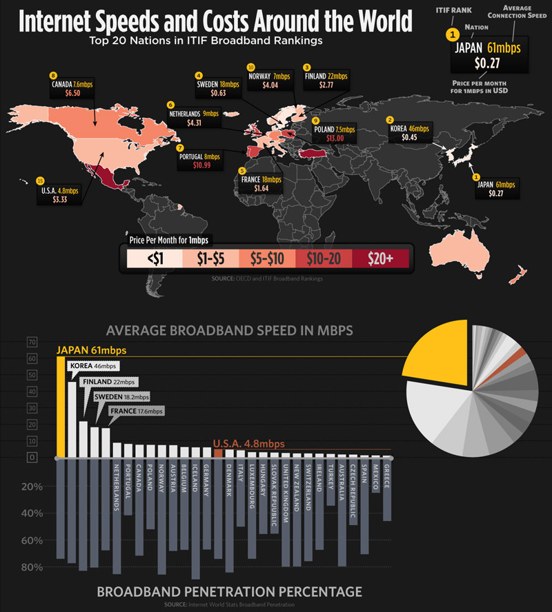 ちなみにかのアメリカは第15位(4.8mbps、3ドル33セント)。