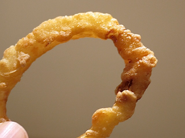 シッカリとした繊維たくましいタマネギで、ザクッと前歯で衣が崩れる。