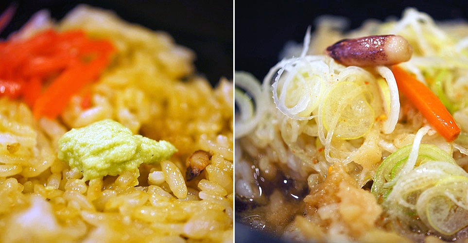 油の風味とタレの味わいをまとったご飯で、そこにわさびをたっぷりのっけてわさびご飯のようにする…、生姜をおかずにパクパク食べて、半分ほども減ったところで一工夫。