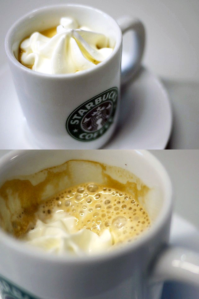 エスプレッソコーヒーの上に、クリームのっけてそれが溶けてエスプレッソと混じり合うのをたのしむ飲み物。
