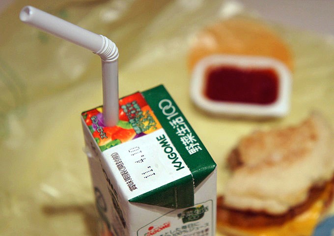 飲み物にもらった「野菜生活」に付属した、伸縮自在のストローが、丈夫で立派でしかもジャバラの折れ首ストロー。