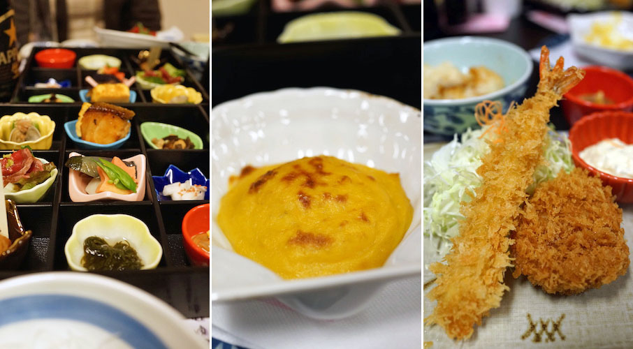 9つに別れたお銃の中にあれこれ料理が並び、刺身に豆腐。日本料理ならではの安心できる品揃え。