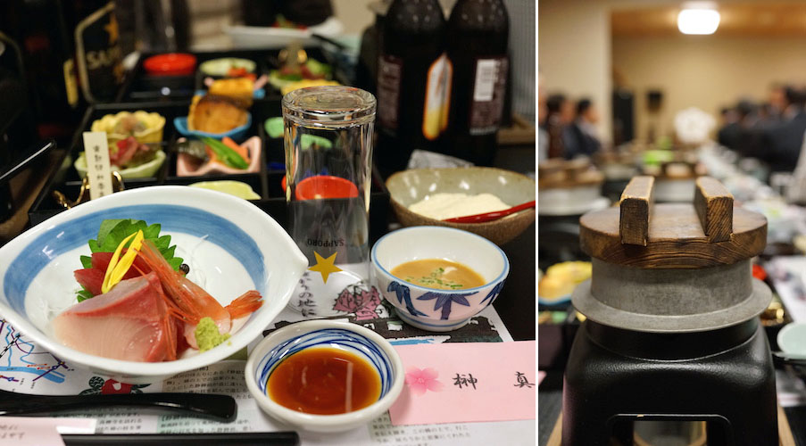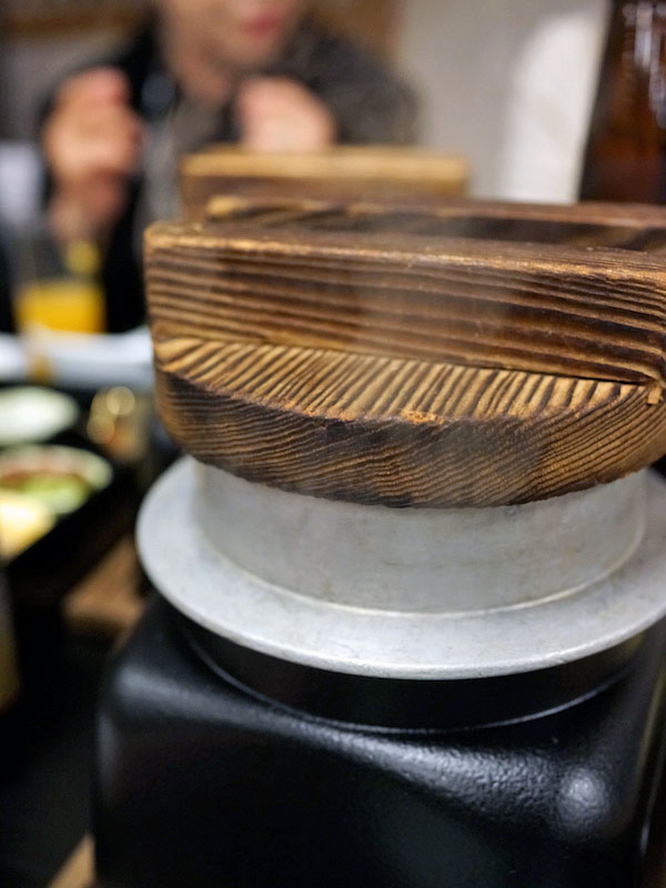 出汁のおいしい匂いも一緒にやってきて、蓋を開けたくなるのを必死に我慢しながらお酒を飲んで、料理をつまむ。こういう宴会ってなんだかたのしい。