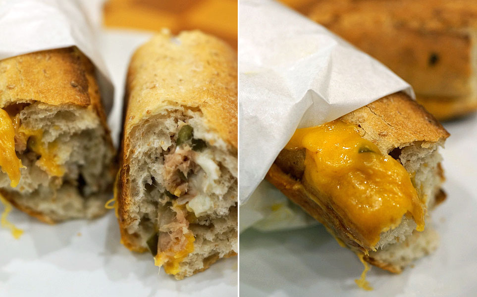 今ではフィローネブレッドで、ちょっとモッチリ。ツナやチーズの食感が引き立たないのがちょっと残念。お腹を満たすにはこのパン、この量がいいのでしょうね。