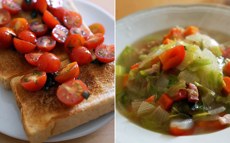 田舎から送ってくれた野菜を使ったスープを炊いて、サイドに添えたら今日の食卓の出来上がり。