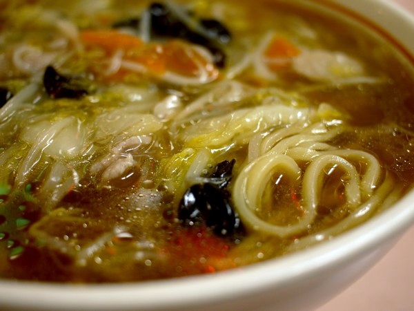 とろみが麺のヌルンとした食感をより一層に引き立てて、細い数本が太い一本の麺のようになって口の中に放り込む。