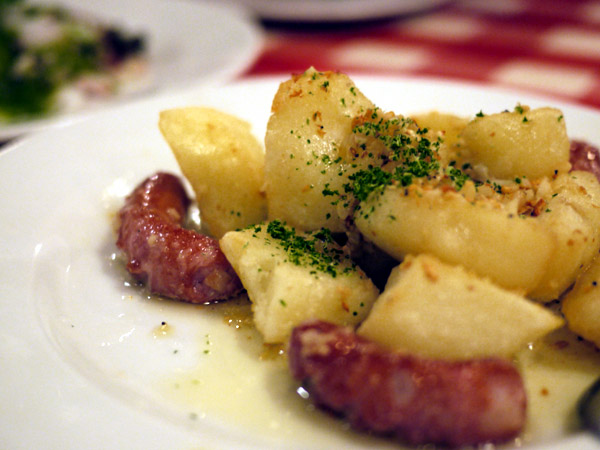 ホクホクとして、ちょっとバサバサしたジャガイモを、潰して肉汁と一緒に食べる。