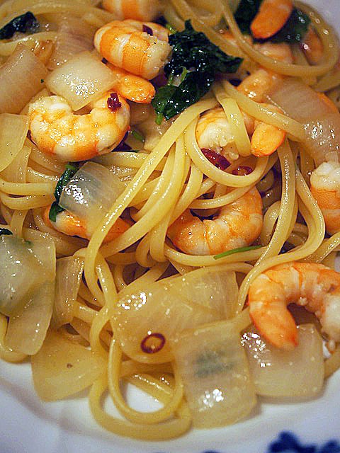 スタバに夜のエビパスタ