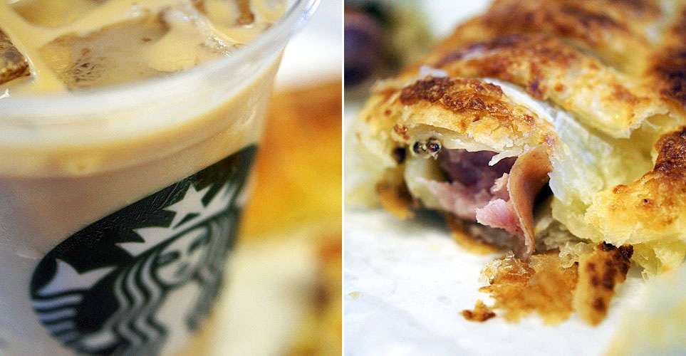 パキッと歯切れて中から出てくる肉汁を、冷たいコーヒー・ドリンクでスキッとお腹に流しこむ。