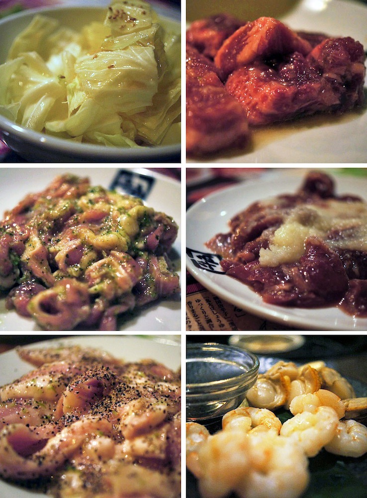 すりおろした生のにんにくをタップリののせたハラミだったり、豚トロを塩ダレでもみそこにブラックペパーをたくさんまぶしたモノとか。