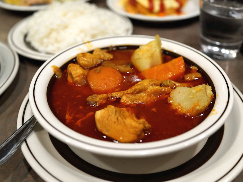 手羽元も一緒にカレーで煮こまれていて、それは味をもっぱら出すため。骨を掴んで持ち上げるとバサリと肉が骨からほどけて落ちるほど。