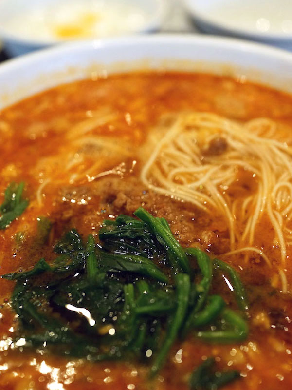 唐辛子と中華スパイスの香り濃厚。スキッと辛くてスープの旨みはドッシリしてるサラサラ系の担々麺の中ではかなりのオキニイリ。